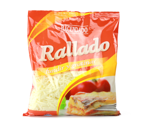 - 3. Rallado para gratinar... pero no es queso: pese a llamarse así no tiene queso. Es un producto lácteo con grasas vegetales más baratas que la grasa láctea. No se funde con tanta facilidad como un queso de verdad y suele quemarse al gratinar.